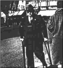 War Service Badge on his lapel!