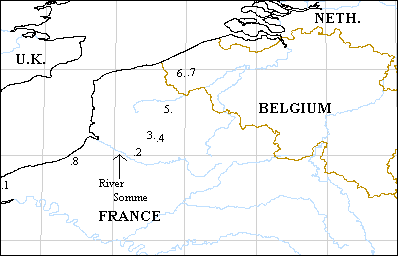 identifies the major locations in France and Flanders where William Brown