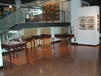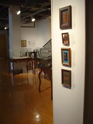 ![]() wide view of four cases with Shari McGuirl's work on the back wall |