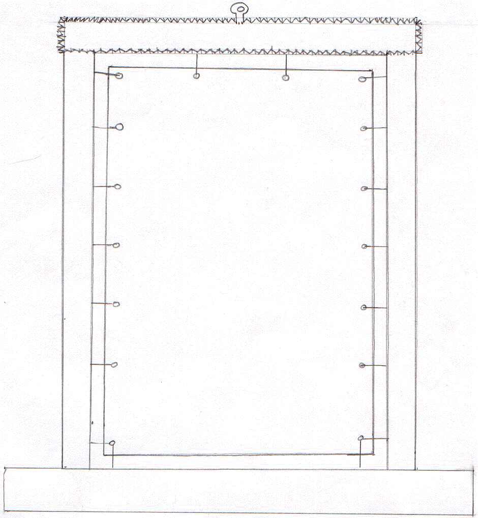 Pasaras el pedazo de piel por el orificio del porta-cascabel, luego se sujetara el cascabel, (con un cinturón eléctrico, al orificio de la piel (ver dibujo 3).