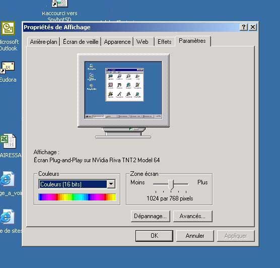 suivant la taille de votre écran, laissez le paramètre 1024x768, ou descendez à la résolution inférieure en déplaçant le curseur vers la gauche, les icônes seront alors plus grosses de même que les polices d'écritures