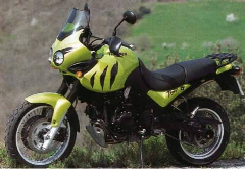 La Triumph Tiger 2001 hérite d'une augmentation de cylindrée, en passant de 855 cm3 à 955 avec l'adoption d'un nouveau bloc moteur. Le travail des ingénieurs a consisté à chercher un regain de puissance à mi-régime et à rendre ce moteur propre et silencieux. Une injection de troisième génération, dotée d'un capteur d'oxygène sur les tubulures d'échappement, optimise en permanence la quantité d'air présente dans le mélange et réduit les émissions polluantes. Le déplacement de l'alternateur en bout de vilebrequin, au lieu d'être logé derrière les cylindres, a permis de supprimer un train d'engrenage. Le moteur est parfaitement équilibré et permet de descendre sur le sixième rapport de boite jusqu'à 1500 tr/mn sans à-coup de transmission. A partir de là et jusqu'à 3500 tr/mn (environ 90 km/h), le moteur répond avec une bonne volonté évidente, ce qui s'apprécie en ville comme sur nationale. Plus haut, le moteur délivre le gros de sa puissance en atteignant son couple maxi dès 4 400 tr/mn (120 km/h). Jusqu'à 6 000 tr/mn, ce « trois cylindres » est un véritable régal et offre de remarquables reprises sans avoir besoin de changer de rapport. Évidemment, il est possible de forcer l'allure. L'aiguille du compte-tours monte sans rechigner jusqu'à la zone rouge, mais sans la sensation de bulldozer délivré à mi-régime. La partie cycle est en adéquation avec le groupe propulseur. La position de sénateur, avec trois niveaux de réglage grâce à la selle amovible, permet d'affronter toutes les situations avec précision. Grâce au grand guidon, le conducteur place la moto où il veut, accentue à volonté le gîte pour négocier un virage qui se referme ou redresser la machine dans un pif paf. Les suspensions avalent avec souplesse les irrégularités du bitume. A haute vitesse, la tenue de cap est rassurante et, dans les courbes, la garde au sol est suffisante. Si un repose-pied vient à tutoyer l'asphalte, il y a de la marge avant de racler une autre pièce de la moto. En duo, le porte paquet permet de se retenir au freinage et les repose-pieds ne sont pas exagérément hauts. On se brûle juste le mollet droit sur l'échappement... Bilan : Moteur velu, confort et tenue de route rassurante destinent la Tiger au voyage, d'autant qu'une consommation raisonnable (7,2 l durant l'essai) alliée à un bidon de 24 litres offre une autonomie de près de 350 km. Mais la bête aime aussi angler sur les petites routes. Sur la terre, il faudra en revanche se limiter aux larges pistes sèches. Ni le poids de la bête, ni les pneus ne permettent d'aborder un sentier garni d'ornières. Surtout pour les moins d'un mètre soixante quinze pour lesquels la hauteur de selle reste problématique lors des manoeuvres à l'arrêt. Pour