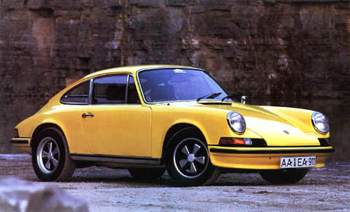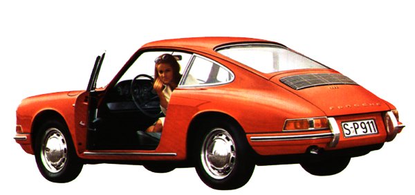 | Si l'étude de la Porsche 911, à l'initiative de Dr Ferry Porsche, le fils du Dr Ferdinand Porsche, debute en 1956, ce n'est qu'en 1963, au Salon de Franckfort, que la voiture est devoilée au public. À l'origine, deux projets sont menés parallèlement. Celui d'une vraie 4 places et celui d'une voiture plus petite à 2 places auxquelles on peut ajouter deux autres en dépannage. On dit à l'époque une 2+2. C'est cette dernière etude qui séduit le plus le patron et qui sera menée à terme sous le nom de référence 901. Butzi Porsche, le propre fils de Ferry, en a dessiné les lignes; chez Porsche, tout est vraiment une histoire de famille. Du côté de la technique, on notera la présence de l'ingénieur Kommanda, qui a conçu la structure, et d'Helmut Bott, qui a mis au point les trains roulants. L'accueil de la nouvelle Porsche sera exceptionnel. Les visiteurs du Salon se pressent pour la voir. Elle marque un renouvellement radical de la ligne par rapport à la 356, mais on sent toujours la patte de la maison. Les clients ne sont pas trahis. |