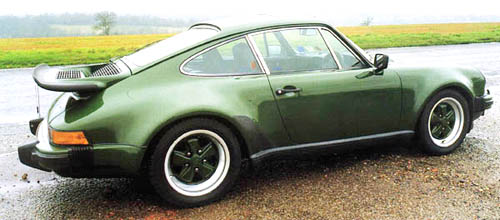 | Avec de bons vieux carburateurs, puis avec l'injection électronique, les Porsche 911 montent en puissance, comme on vient de le voir. Vient ensuite la mode des turbocompresseurs, ces drôles de mécanisme qui compriment les gaz d'admission avant de les "souffler" dans les cylindres. Là, c'est l'expérience de la course qui va parler. En pleine crise du pétrole, Porsche lance sur le marché la 911 Turbo. Les chiffres parlent d'eux-mêmes: 260 ch, boîte 4 vitesses, 24"2 au kilometre départ arrêté, vitesse maximale de 256 km/h. Pour ce faire, un cocktail infaillible: l'injection électronique Bosch K-Jetronic et un Turbo KKK. Extérieurement, la voiture est plus aggressive que la 911 de base. Les roues de 7x15 à l'avant et 8x15 à l'arrière montrent clairement les intentions de la belle, d'autant plus qu'un énorme aileron vient couronner le capot-moteur. |