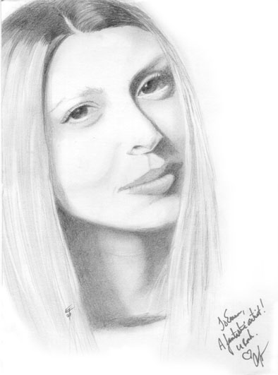 | Anyway, I think she liked it, she showed it to her mother, and then i got to chat with her mum too, who was also very nice.So yes I can honestly say I was positively beaming when I came out again. haha. She was so nice to everyone, and quite chatty, think thats why people were taking so long, when you were in the queue, you thought it was the people taking like ages or something, but it was Amber, chatting to everyone! hah. So that was cool. So those of you who are in the vicinity of a Forbidden Planet where she is making an appearance, MAKE SURE YOU GO !! you'll kick yourself if you don't 'cos she 's so nice :O ) I nearly didn't go, I nearly bottled it.Anywhoo, hope u like the pic, I hope to do some more in the future, when I get some pictures together. So keep checking back! |