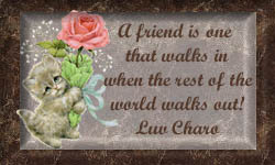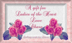These gifts are dedicated to the sisterhood of all members of the "Ladies of the Heart". Please feel free to help yourself to one or more of these gifts and display it on your page linking us as sisters in the drive for a better world! Each gift is made with love and with a huge thank you for the kindness and love that you have bestowed upon me. You do not have to link back to me but if you so desire, then I thank you so much!