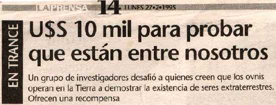 que ofrece U$S 10.000 a quien presente alguna prueba sobre la llegada de