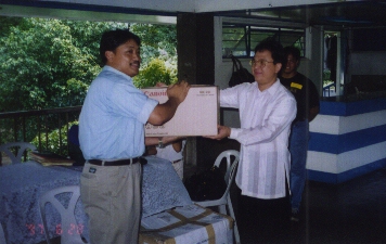 Brod. Moching turning over a computer to Brod. Bong for the TAO office in Manila