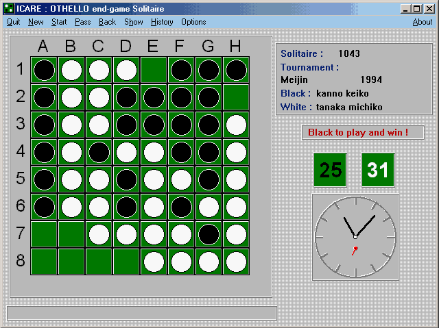 http://w1.865.telia.com/~u86519628/happy.html Es el más moderno y usa la base de datos WThor. Una dirección alternativa: http://www.fngo.it/happyend.asp - Sensei - Icare Los anteriores programas se pueden descargar en el sitio FTP de la federación italiana. El Icare, también desde esta página: http://homepages.compuserve.de/othelloclub/ programs.html |