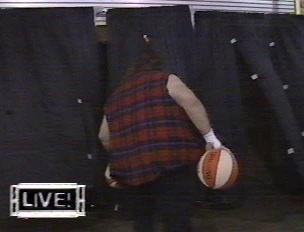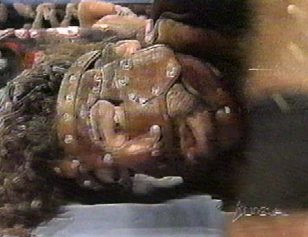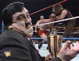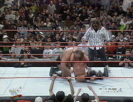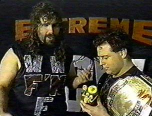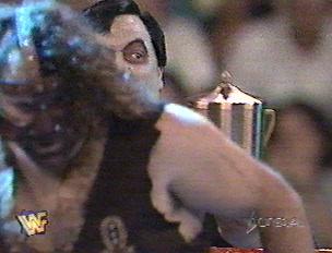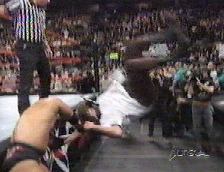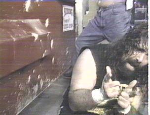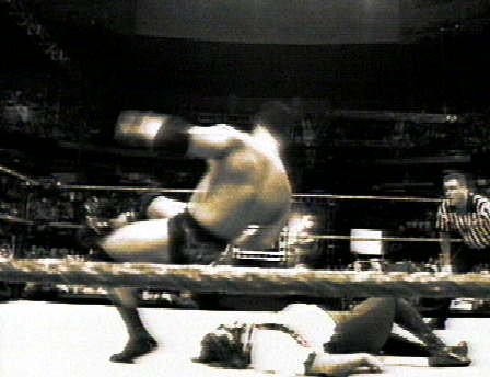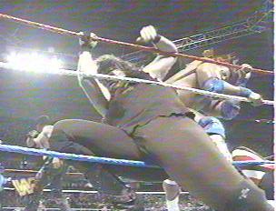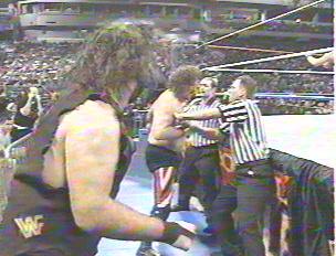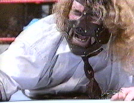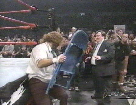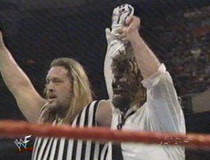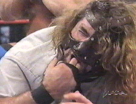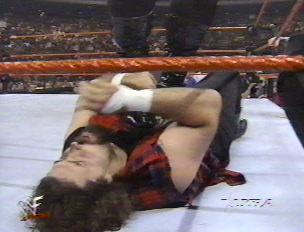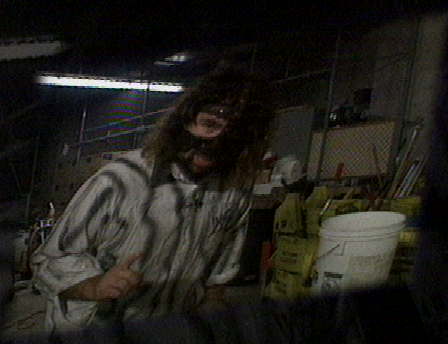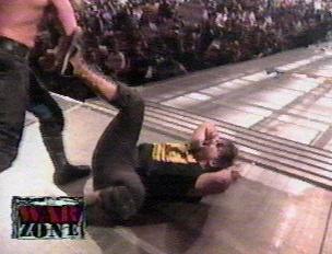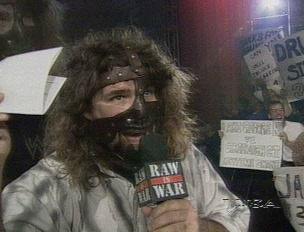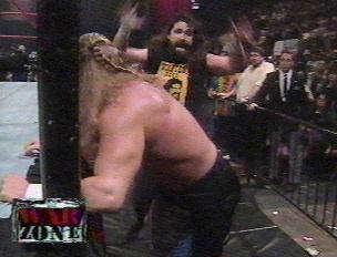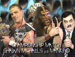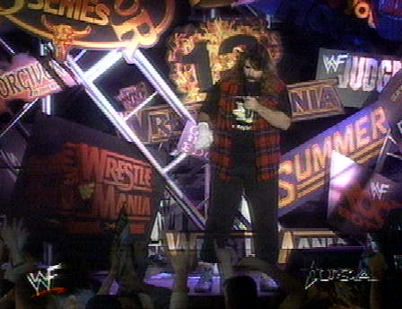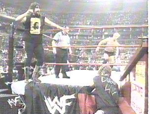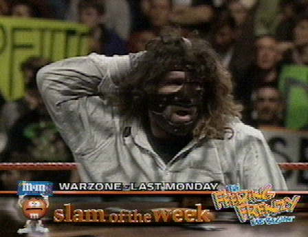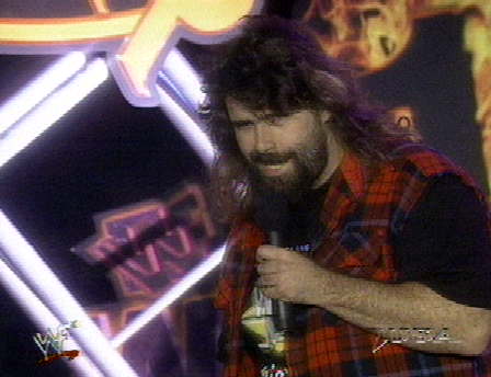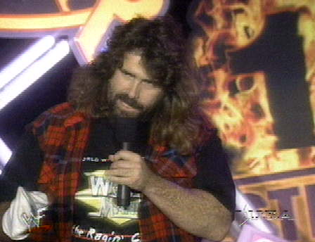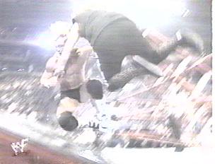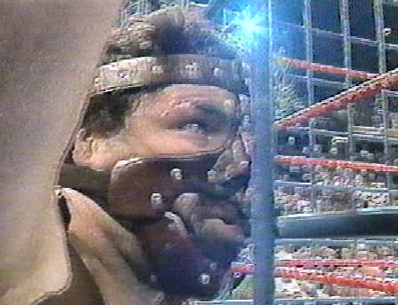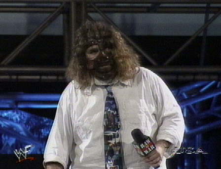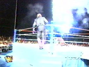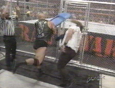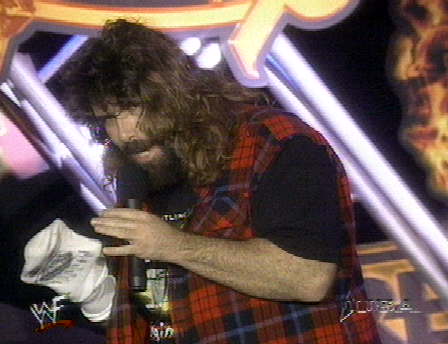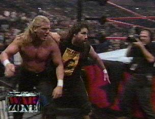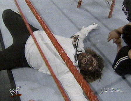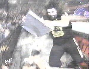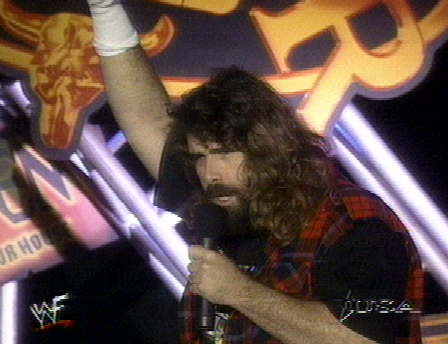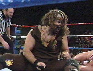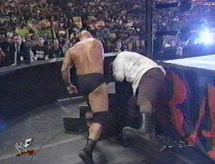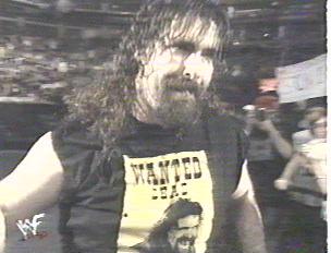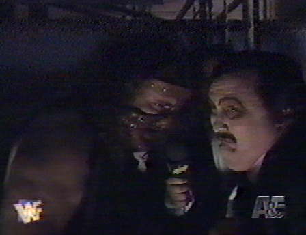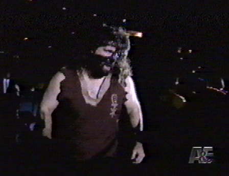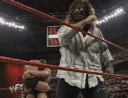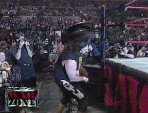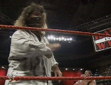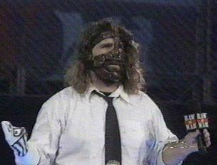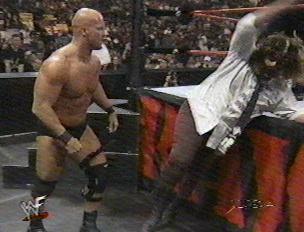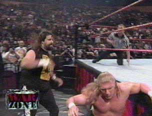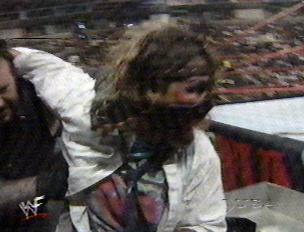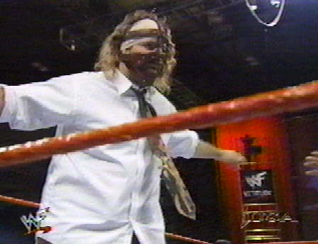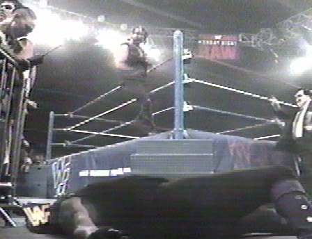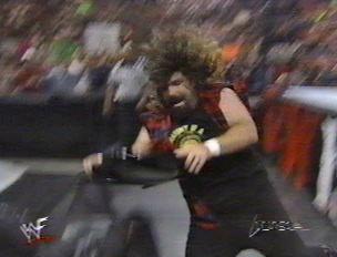 Undertaker blowing up the ring posts with Mankind inside the ring