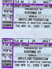 | The Scoop.... Okay!! Hi everyone!! I must say...I am not glad to be back :-( I had such a great time I wish it could have just continued and continued :-) I wish it was like the Grateful Dead and one could just tour around with them!!! Well, so much for wishful thinking. Now for the Show!!!.... So things started off quite well. Our little two door Neon wasn't in the rental lot so they gave us a sporty little black mustang!!!(...no speeding tickets there or back!!! Yeah!) We made it to Seattle just in time to check out the city a little before hitting the Debra & Jeff signing (which we actually found!! another sign it was going to be a good show). Just like in Vegas, Jeff and Debra were wonderful about allowing me to take a pic of them with my daughter!! Annie, I remembered to tell Jeff about the Derby. Apparently he hasn't forgotten about the Derby. He was very nice, very personable. So after that wonderful experience (not being sarcastic) we ran back to the car and dashed over to the Seattle Center to see if we could catch any of the wrestlers as they entered the arena. Many had already come in and their cars were just whizzing through, unlike in Vegas where they actually stopped for a moment and we were able to see them quite close. Here are some of the wrestlers we saw come in: Chyna & HHH; DOA; Debra; Jeff Jarrett; Big Boss Man; Kane (wearing a skymask and a white towel over his head); Mankind; Edge (this man cannot help but be gorgeous all the time) & Gangrel; Test; Jacklyn; hhhmmm, that is all that I can think of right now. The doors opened at 6:30. I think it was shortly after 7 that we decided to go into the arena. I bought an Undertaker Sipper and we went to search out our seats. We found them and sat for about ten minutes. They weren't very good seats (that's an understatement...they were literally the last seats in the house -- and I am terrified of heights so I was very queazy) so after about ten minutes I told my daughter that we should go look around. I needed time to think. Well, cut to the chase, we exchanged our ticket (plus a little extra money) for front row seats. Ironic, from the very last row to the very first. Well, since my daughter is only seven-years-old front row is perfect for that shorty. It was our second time front row!!!!! The people sitting next to us were very cool, not too rowdy, not too quiet, just perfect. So there we were front row and ready to go.... Well that rumor about the Blue Meanie and DOA being canned wasn't true according to Seattle action because they were all present and accounted for. Goldust was hysterical. He is much more sexual than I remember him being in the past. It seems more overt now, humping the rope of the ring, the rope of his robe, very overt. Liked his face paint, getting very creative there. Thank goodness they didn't do their humping on our corner of the ring. :-) Saved that for later!! The Al Snow and DiLo match was a lot of fun!! My daughter had brought her "head" from the Vegas show. She likes both AS and DL so, for her, it was hard which to pick. For me, Snow all the way!! The Godfather looked good!! It took me a long time to be okay with his act but now I'm more tolerant and able to play with it. So we loved it!! Hooted and howlered. Seattle's hoes are a little on the tame side if you ask me, and only two. (Vegas had great hoes...go figure..lol) The Brood was all together. Everything that went wrong was Christian's fault. I know the rumors are that either Edge and Christian, or Gangrel will be released from MOD, but it really seems like it's just going to be Christian who is released. Edge was flirting with a girl sitting 3 seats down from us in the same row (I now know her to be Andrea) so that she would take her pic. So we got a great view of him. A lot of the Broods moves were great. They are fun to watch. I have nothing good to say about BM and Test....Test really thinks he's the stuff....but....he is so NOT the stuff! The Rock....I'm sorry but I still hate him. My daughter tends to go back and forth with whether or not she likes him, but I've never liked him and I still don't. BUT....I loved singing along with him. Perhaps part of the fun is because he tells us not to. Yes, I realize this is reverse pychology on his part. But it was fun. We were very much going for the Big Show. At least in part because his music is very cool -- good enterance music! Surprisingly, this was a really fun match! HHH looked good. He got some overzealous kid kicked out...Funny. But he looked good, told the crowd where to go, repeatedly. Pulled Kane between the metal post right in front of us (we were on the isle right next to the vorner post). If my pics came out I should have a pretty good shot of this. Hey Dawny, if that pimple is more on Chyna's hip than on her ass, it's still there. Chyna looked great (excluding the previous comment, but no one is perfect). She is very focused. She wore those teeny little shorts that she's been wearing as of late, but had them unzipped just a tad and then folded down. Very cool, liked the suede-on-leather affect. The three way with the female wrestlers was fun. Ivory is good at working the crowd. She looked better than the other two women. Maybe because she looks more serious, less into her feminine attributes and more into her wrestling ways.... Ivory has the funniest expressions on her face in the match, very over-exaggerated, kind of perfect...playful, not serious, but fake serious Mankind was paired up with Shamrock. Yuk!! Hate Shamrock. Love Foley. Then they were up against the MOD/The Acolytes. I don't care for the A's. But it was hard not to vote for a part of the MOD. But, my longterm loyalty to Mankind won out!!! He looked great!! Surprisingly, the Hardcore match was pretty good. Actually it was quite good. I can't say that I care much for either Holly or Val, but they really put on a good show. My daughter kept screaming "Get the table". She was pleased as punch when the "Table" chant 