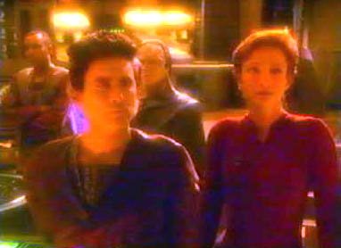 Auf diese Weise können die Besatzter nicht verhindern, daß Sisko mit der Defiant in das Wurmloch fliegt und dort mit Unterstützung