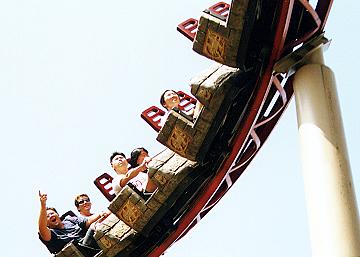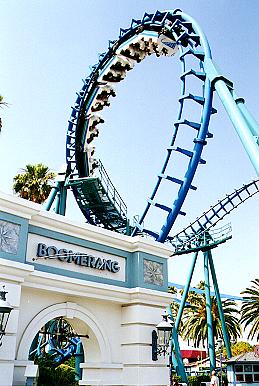 The Boomerang. One of the many Coaster rides in Knott's Berry Farm. You travel both ways on the Boomerang. Forward first till the end of the track and then backwards.