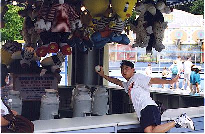 Colin attempting a slam-dunk to win Deb her stuffed toy. He was more stylish than effective, returning empty handed.
