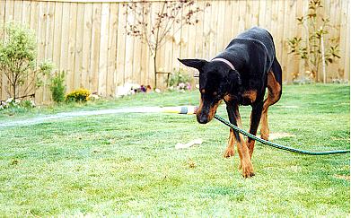 Oscar and the amazing water hose! His all time favourite game, catch the water stream. |