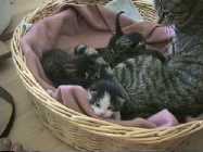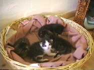 Etwa eine Woche nach der Geburt öffnen die Katzenkinder ihre Augen zum ersten Mal. Sie scheinen zu diesem Zeitpunkt jedoch noch nicht gut sehen zu können und reagieren kaum auf Licht oder Bewegungen. Erst nach ein oder zwei weiteren Tagen läßt sich erkennen, daß die Katzen nun wirklich sehen können. Sie krabbeln an den Korbrand und ziehen sich mit den Pfoten daran hoch, um neugierig aus dem Körbchen gucken zu können. Vor Menschen scheinen sie keinerlei Scheu zu haben. Dies ist gewiß bei Wildkatzen anders.