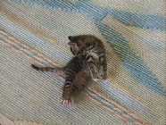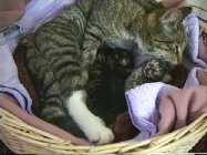 In der Zeit, in der die Katzenbabys noch ausschließlich im Körbchen Leben, putzt die Katzenmutter die Kinder und hält das Körbchen sauber. Die Jungen sind noch nicht in der Lage, sich selbst zu putzen. Es läßt sich nicht vermeiden, daß die Katzenbabys gelegentlich ins Körbchen machen. Deshalb sollte dies mit einer Decke ausgelegt werden, die immer mal wieder auszuwechseln ist. |