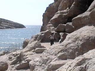 Dort, wo es die Felsformation erlaubt, fällt das Gelände in künstlichen Terrassen ab, die hier großzügiger ausgestattet sind, als in den steileren, oberen Bereichen der Felswand. Der heutige Zustand täuscht allerdings etwas, da es zahlreiche Ansätze von Felsmauern gibt, welche später abgebrochen wurden. Möglicherweise sind diese Terrassen ursprünglich höher umschlossen gewesen - man beachte dazu den Boden vor den Terrassen mit rechteckigen Ausnehmungen und Mauerabsätzen. Auch hier ist alles aus dem anstehenden Fels herausgehauen worden.