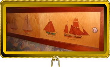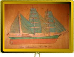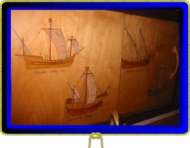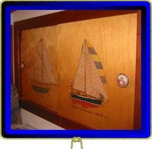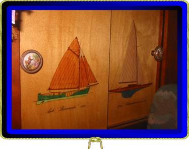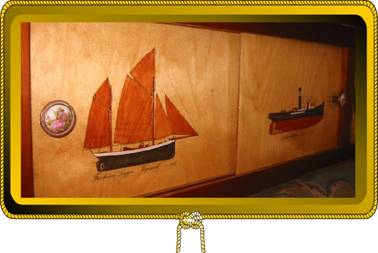 Die Schapptüren sind mit Schiffsmotiven vorwiegend aus den Nordeuropäischen Küstengewässern versehen. Sie sind von Originalplänen in Aquarell gemalt und mit einem matten Lack versiegelt.