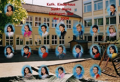 Die Hortkinder bilden auch einen wesentlichen Teil unseres Kinderhausgeschehens. Teilweise sind schon Kinder vor der Schule im Frühdienst anwesend um dann von hier aus zur Schule zu gehen. Nach ihrem Unterricht kommen sie dann zum Mittagessern entweder zu ihrer Gruppe oder anschließend zu den Spätessern (begründet auf unterschiedlichen Unterrichtsschluss der Grundschulen im Einzugsgebiet) dazu. Anschließend haben die Kinder die Möglichkeit ihre Hausaufgaben unter Betreuung (keine Nachhilfe!) in einem separaten ruhigen Raum zu erledigen. Nachmittags finden dann unterschiedlichste Projekte hausübergreifend statt an denen die Hortkinder aller Gruppen je nach Vorlieben/Neigungen etc teilnehmen können. So z.B. die Jungen-Gruppe welche schon vielerlei Aktionen wie Fußballtunier der kath. Kinderhäuser; Kegeln; Schlittschuh laufen; u.v.m. unternommen haben. Als auch die Tanz-Gruppe welche auch an unserem Jubiläumsfest 2004 wieder ihr Können zum besten geben wird. Weitere stattgefundene Projekte 2003/04 waren auch ein Computer-Führerschein; Kletterprojekt an der Kletterwand des Jugendhauses Hallschlag und eine Englisch - AG.