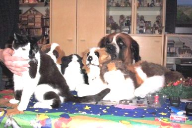 bin ich nicht süss?? wo soll ich denn nur P.. so richtig nett ist es im Bett Hund und Katz