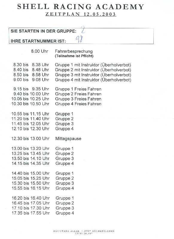 Anmeldeformular ausfüllen und wieder zurückfaxen. Wenn Shell Racing die 140 Euro