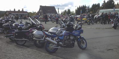 Am Freitag nachmittag ging's los Richtung Winterberg, natürlich nicht auf direktem Weg, sondern über kleine wenig befahrene Straßen. Übernachtet haben wir im Hotel Hessenhof in Winterberg. Das Hotel kann durchaus als motorradfreundlich betrachtet werden, ist allerdings nicht ganz billig (44 Euro pro Nase, allerdings mit Schwimbad, Sauna, Solarium etc.).