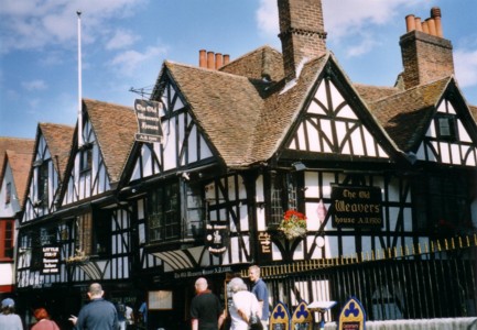 The Old Weavers' House - wohl das berühmteste Gebäude in Canterbury. Erbaut um 1500 für hugenottische Weber aus Frankreich und Flandern, denen Königin Elizabeth I. in England Schutz gewährte.