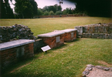 Während der Ausgrabungen zu Anfang des 20. Jahrhunderts wurden vier Kirchen aus sächsischer Zeit entdeckt. Auf dem oberen Bild sieht man die Nordwand des Hauptschiffs der im 11. Jahrhundert erbauten normannischen Kirche. Die dunklen Steine im oberen Teil der Nordwand stammen aus der Tudor-Zeit.
