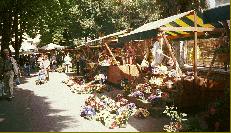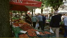 Der alltägliche Markt in Pula im Zentrum, Blumen, Obst, Gemüse, Kleidung, Fleisch und Fisch, Muscheln -- hier gibt es ein breites Angebot.