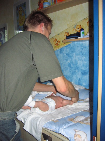 Papa hat schon viel Übung im wickeln und anziehen.....