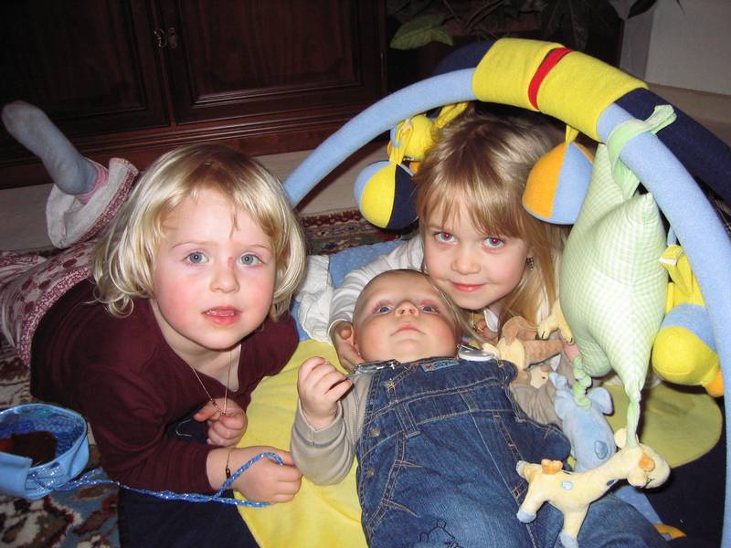 Finn mit seinen beiden Cousinen Lena Becker (li.) und Saskia Knauth (re.) ......
