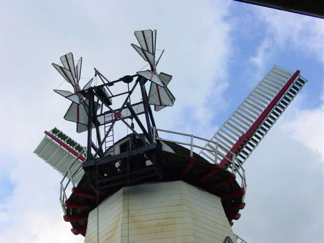 bei der Drehung der Kappe bewirkte, dennoch wurden etliche Mühlen nachträglich damit ausgerüstet. Die Mühle in Artlenburg steht genau dort, wo der Elbe-Seitenkanal von der Elbe nach Süden abzweigt |