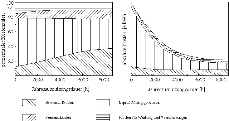 Viel stärker fallen allerdings die geringen Nutzungsdauern der Stromerzeugungsanlagen für Mittel- und Spitzenlast ins Gewicht. Das in diesen Anlagen gebundene Kapital wird schlecht ausgenutzt. So werden Kernkraftwerke unter anderen aufgrund ihrer sehr hohen Investitionskosten und den im Verhältnis dazu niedrigen Brennstoffkosten ausschließlich im Grundlastbereich gefahren.