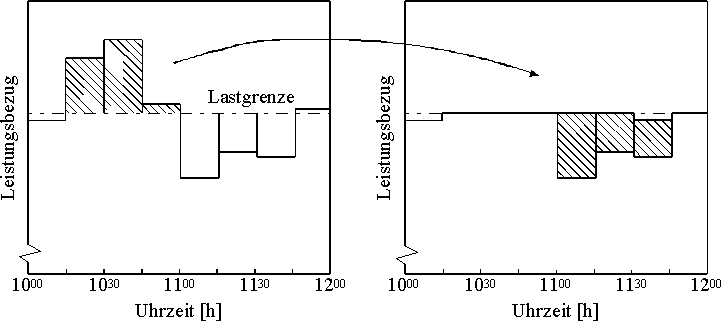 Als Hilfsmittel für den Verbraucher zur Minimierung der Strombezugskosten ist das sogenannte Lastmanagement geeignet. Das Lastmanagement beeinflußt den Leistungsbezug in zwei unterschiedlichen Zeitbereichen.