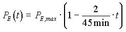Aus der Forderung, daß das Moment konstant sein und das Schwungrad auf bis zu 1/3 seiner Anfangsdrehzahl entladen werden soll, ergibt sich ein linearer Zusammenhang zwischen der Entladeleistung und der Zeit: