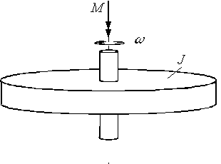 Um die im Schwungrad bei der Energiespeicherung und -entnahme stattfindenden Vorgänge zu verdeutlichen, wird zunächst nur das mechanische System betrachtet und der Drallsatz für das reibungsfrei laufende Schwungrad mit konstantem Massenträgheitsmoment aufgestellt: