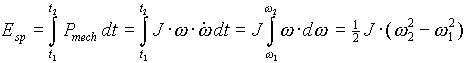 Die während eines Zeitraums t2 - t1 gespeicherte bzw. entnommene Energie ergibt sich aus der Integration der Leistung über diesen Zeitraum und ist bekanntermaßen abhängig vom Massenträgheitsmoment und von der Winkelgeschwindigkeit, mit der es rotiert: