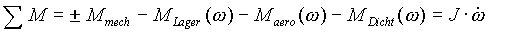 Das oben betrachtete mechanische System ist unvollständig, da außer dem von der elektrischen Maschine erzeugten Moment noch weitere durch Reibung hervorgerufene Momente auf das Schwungrad wirken. Die Lagerreibung erzeugt ein Lagerreibmoment MLager, das von der Lagerbelastung und der Drehzahl abhängig ist. Ebenso entsteht durch Luftreibung an dem Schwungrad ein von Drehzahl und Gehäuseinnendruck abhängiges Reibmoment Maero. Wenn die elektrische Maschine außerhalb des Gehäuses angebracht ist, kommt noch das drehzahlabhängige Dichtungsreibmoment MDicht hinzu. Mit diesen zusätzlichen Momenten ändert sich der Drallsatz nach Gleichung (8) wie folgt: