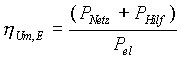 Betrachtet man nun den Entladevorgang der Schwungradanlage, so kehrt sich der Leistungsfluß im elektrischen Anlagenteil um. Der Maschinenwirkungsgrad h el,E und der Umrichterwirkungsgrad h Um,E für den Entladevorgang ergibt sich zu:
