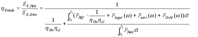 Beim Entladevorgang ist der Nutzen die an das Netz abgegebene elektrische Energie EE,Netz und der Aufwand die Abnahme des Schwungradenergieinhaltes EE,Schw. Der Entladewirkungsgrad ergibt sich zu: