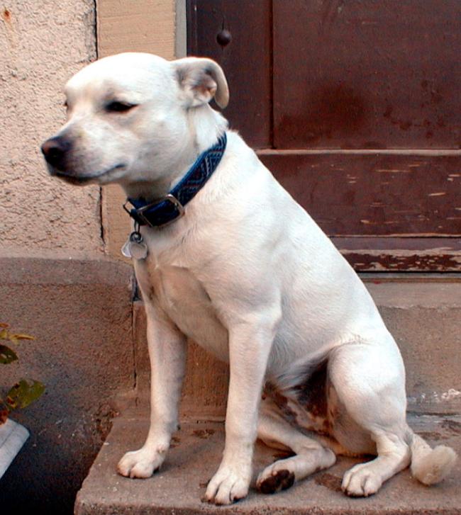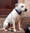 Ein Kampfhundmischling. Sehr lieb und friedlich, aber hört nicht immer aufs Wort