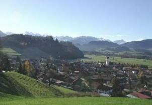 Blick über Altstädten zu den Oberstdorfer Bergen