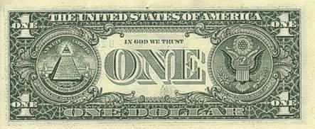Der amerikanische 1$-Schein: Auf der Rückseite ist das Siegel der Illuminaten zu