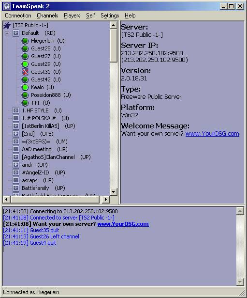 nun die Verbindung zu einem der öffentlichen Teamspeak Server herstellen.