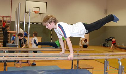 Jungen steht in unserer Turnabteilung ein attraktives breitensportliches Angebot zur Verfügung. Dabei steht das breitensportliche Gerätturnen im Vordergrund. In den Kinder- und Jugendgruppen werden Beweglichkeit, Kraft, Ausdauer und Koordination geschult. Die Jungen werden von qualifizierten Übungsleitern mit den gerätspezifischen Bewegungsformen vertraut gemacht, wobei auf die individuellen Voraussetzungen und Zielsetzungen der einzelnen Turner eingegangen wird: Soll irgendwann einmal ein Wettkampf geturnt werden? Oder geht es lediglich darum, sich fit zu halten? Will man einen Salto lernen? Alles ist möglich. Jedenfalls macht's großen Spaß!