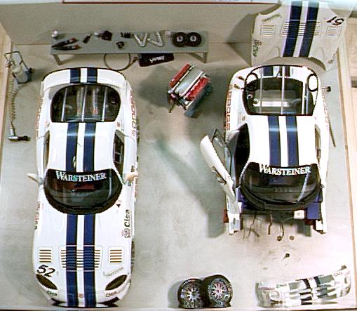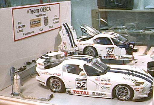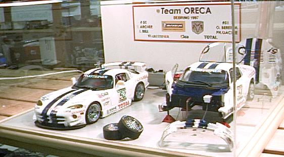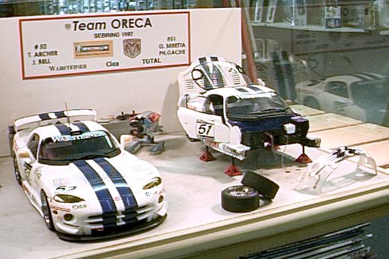 | This is my latest creation! The Oreca team at the Sebring Race in 1997. A nice pit view between the qualification and the race. The #51 is heavily modified as you can see. Die-cast are from Autoart. |