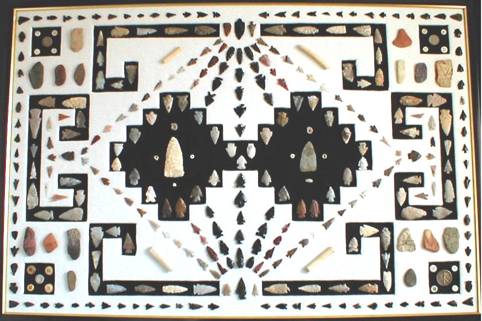 Arranging artifacts within a design - If a design has been mad in the background then artifacts must be arranged within that design to pull the display together. Each section must be put together as a small display with each section complimenting each other. One of the best ways to do this is to start with a single section and work around it. Remember to keep the display balanced, so what you do to the right side will be done to the left side.