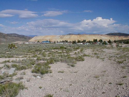 | A mining town that sits below the tailing piles. The mine is still current and active. If they put much more tailings on the pile they may start to bury the town. |