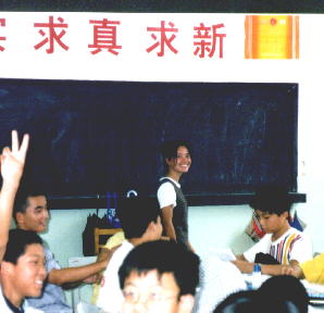 We're ready to teach on the first day... Denise, Mike, Andrew, Jenny, Tae, Holden, Amy, and me.